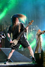 šeit ir viena interesanta persona rindā. Vispār čiksa diezgan smuka. Lol zābaki. Starp citu līdzīgs viņas topiņam, tikai vēl 10x stilīgāks bija vienai spāņu beibei. Tāds ādas. + vēl kaut kādi mistiski svārki = kopumā viņa izskatījās pēc seksīgākās metālistes kādu esmu redzējis. Tajā bildē brilles foršas tam bārdainajam džekam. No saules laikam aizsargā tad kad viņš uz viņu TIEŠI paskatās. Slipknot džeks arī foršs - ēd hotdogu un kasa pakaļu.